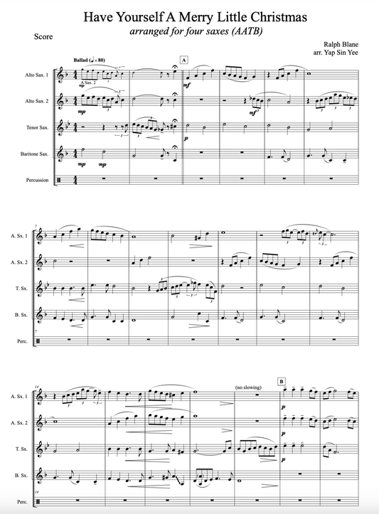 Have Yourself a Merry Christmas (for Saxophone Quartet AATB)