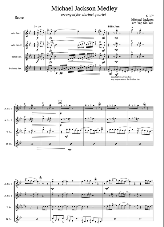 Michael Jackson Medley (for Saxophone Quartet AATB)